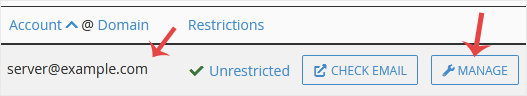 4. Se o seu endereço de e-mail for server@example.com, você deverá ver uma opção Gerenciar no lado direito do seu endereço de e-mail. Clique em Gerenciar .
