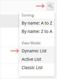 No entanto, se o modo de visualização for Lista Ativa ou Clássica , clique no ícone de chave inglesa para alterá-lo.